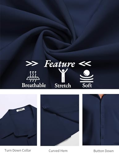 • Timeless Design: Mens Short Sleeve Button Down Shirts comes with button-down closure, regular fit, short sleeve, turn down collar, solid color. Features a hint of elasticity, allowing it to effortlessly adapt to various body types