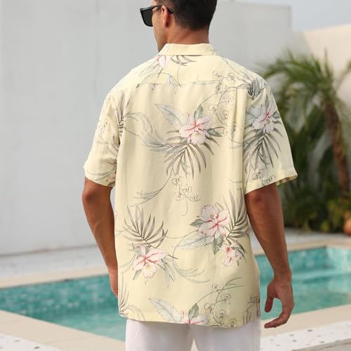 Men's Hawaiian Floral Shirts Silk and Linen Button Down Casual Tropical Holiday Beach Shirts 6
