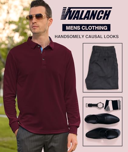HOT ! V VALANCH 3 Pack Men's Long Sleeve Polo Shirts Moisture Wicking Golf Polos Business Travel Casual Collared Shirt
