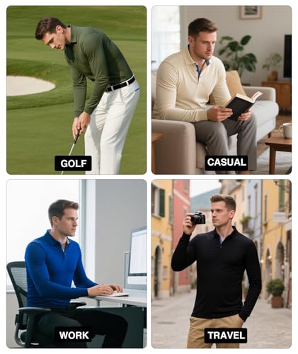 • Features: Long sleeve golf polo shirts for men Features 3 button set-in placket, Softable fabric and suitable length. Refined fit, with the sleeves ending just at the wrist and the body sitting close to your frame without being too tight. Ideal fit ensures both comfort and mobility, making it suitable for both golfing and casual occasions