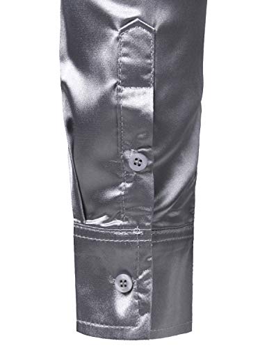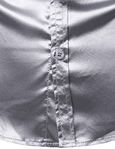 ZEROYAA Men's Luxury Shiny Silk Like Satin Button Up Dress Shirts 6