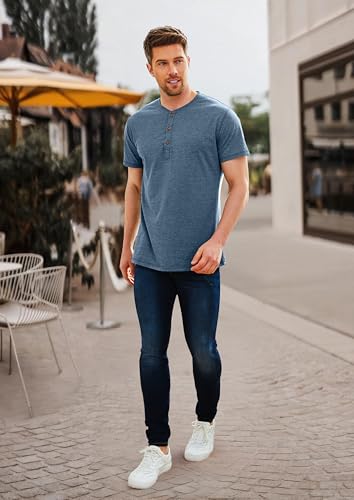 PEGENO Men's Fashion Casual Front Placket Short Sleeve Henley T-Shirts Cotton Shirts 5