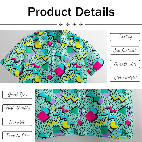 • Relaxed Fit Shirts: With the design of the loose fit style for the 80s shirt button up, there will be no restriction when you move during your wearing. The mens 80s outfit is suitable for Hawaii, Aloha, summer beaches, party themes, holidays, cruises, camping, music festivals, etc.
