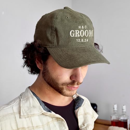 More information about WEAR PHYSIQUE Custom Embroidered Groomsmen Hat, Corduroy Groom Ballcap, Father of the Bride Cap, Best Man Hat, Gift for Him, Wedding & Bachelor Party Hats