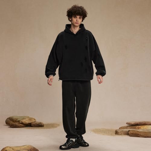 Vintage Hole Hoodies Men Streetwear Oversized Hoodies Spring Autumn Solid Color Hoodies Male 5