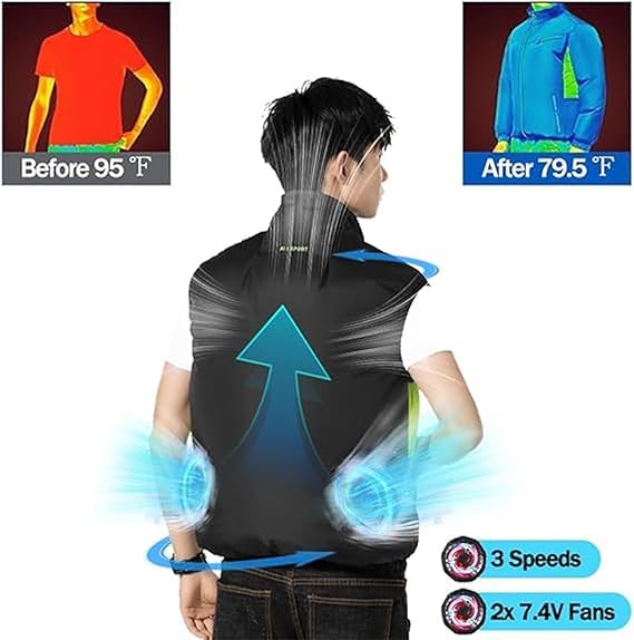 • Wide outdoor use: Designed for all-day wear, this fan jacket is almost unrestricted and is perfect for activities such as hiking, gardening, golf, cycling, traveling, etc., so that you can stay cool anytime, anywhere