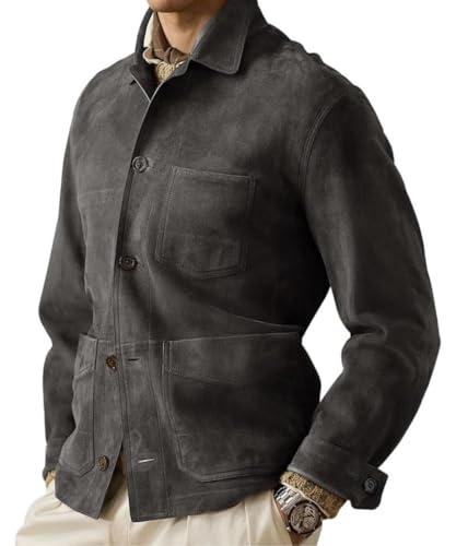 Hide & Seek Men's Vintage Shirt Collar Classic Button-Up Design Casual Long-Sleeve Suede Leather Jacket 5