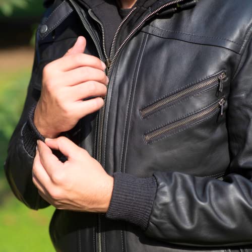 Lambskin Leather Motorcycle Jacket for Men - Genuine Leather Bomber Jacket with Removable Hood 3