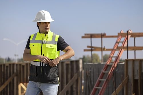 Kishigo Insulated Vest, Highly Visible, Durable Ripstop Vest w/Retractable Clear ID and Flap, Multiple Pockets, Reflective Accents, Type R, Class 2, Lime/Black, X Large 5