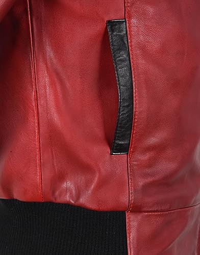 More information about Men's Bomber Real Leather Jacket Red Black Biker Motorcycle Blouson Style Jacket 9015