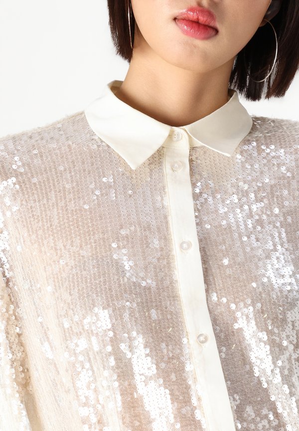 HOT ! ONLCARIN LOOSE SEQUINS SHIRTS - Button-down blouse - creme