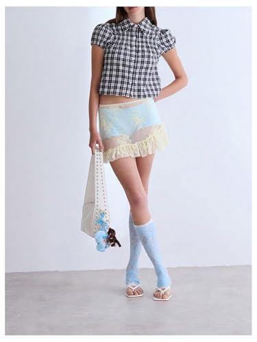 MakeMeChic Women's Beach Cover Up Pleated Mini Skirt Floral Lace Sheer Mid Waisted Summer Boho Y2k Skirts 6
