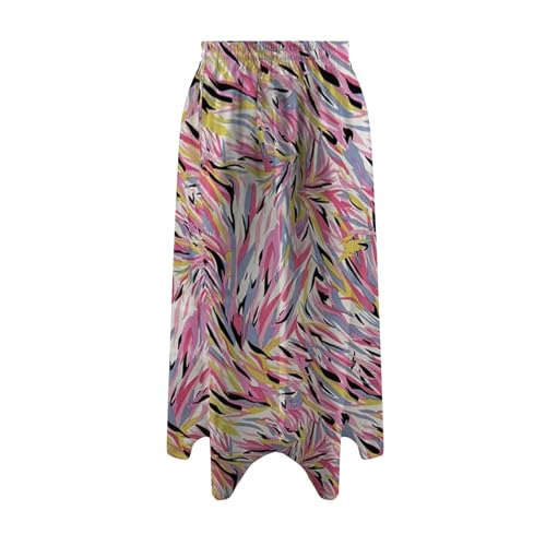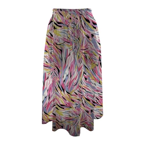 HOT ! Womens Plus Size Midi Skirts Summer Elastic High Waisted Boho Casual Beach Flowy Swing Knee Length Skirts with Pockets
