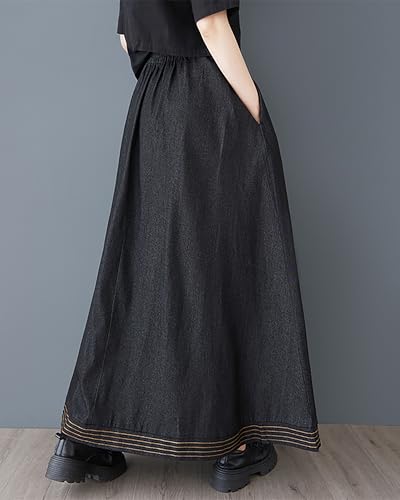 More information about ellazhu Women's Skirt Elastic Waist Solid Straight Hem Two Side Pockets Maxi Loose Casual GZ415