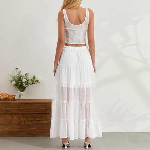 Owl's-Yard Women Summer Polka Dots 2 Piece Sets Sleeveless Square Neck Crop Top Long Skirt Casual Beach Vacation Skirt Set 2