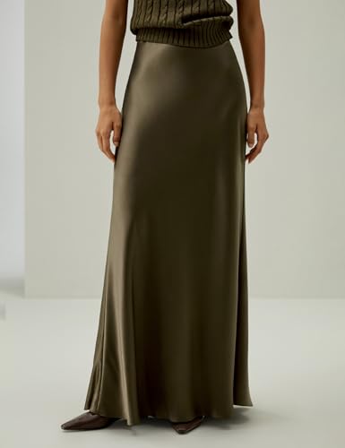 • LUXURIOUS AND ELEGANT: Transform your office and off-duty ensembles with this classic and retro straight-cut skirt. Expertly crafted from luxurious, heavy-weight silk charmeuse, it combines a glossy finish with remarkable durability. The maxi-length silhouette features elegant draping that beautifully contours your curves, culminating in a subtle flare hem for an added touch of sophistication.