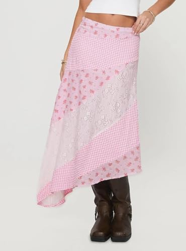 More information about Women Y2K Maxi Skirt Coquette Hight Waist Lace Patchwork Irregular Hem Flowy Midi Skirts Summer Vacation Beachwear