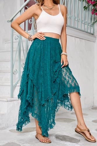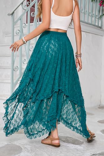 More information about Women's Summer Lace Maxi Skirt 2025 Solid Double Layered High Waist Irregular Ruffle A-line Flowy Beach Long Skirts