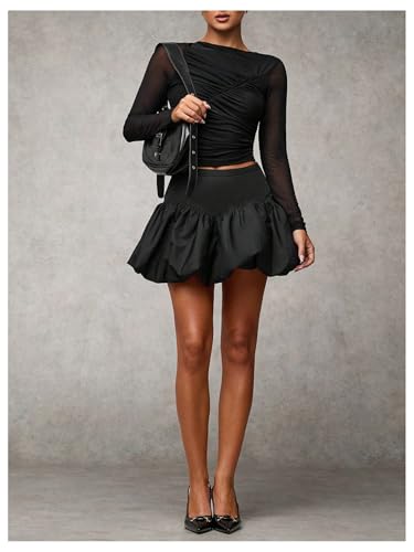 More information about MakeMeChic Women's Elastic Waist Mini Skirt Flared Hem Ruffle A Line Y2K Short Bubble Skirts