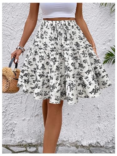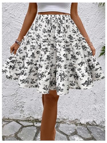 Floerns Women's Floral High Waist Drawstring Ruffled Layer Flared Hem Short Skirts 7