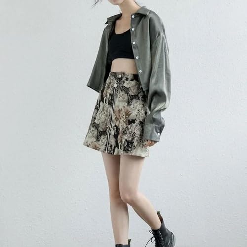 More information about Dawery High Waist Hip A Line Skirt Retro Cat Embroidery Print Autumn Spring Outwear Zipper