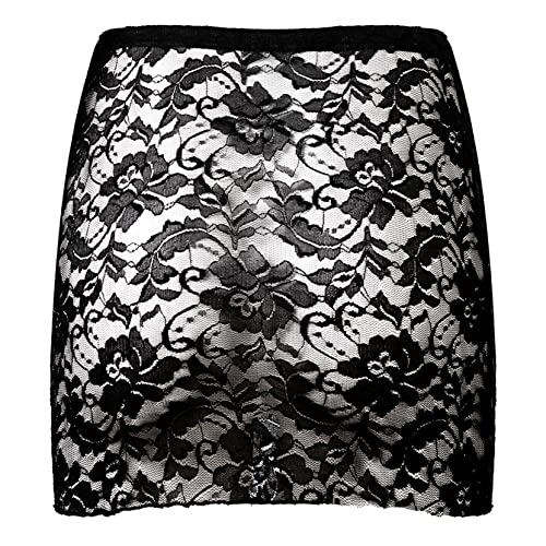 • Women Flower Pattern See-through Lace Skirt Mid Waist Elastic Waistband Sheer Miniskirt Nightwear