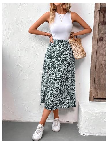 Milumia Women's Ditsy Floral Skirt High Waist Split Thigh Flared Midi Skirts 1