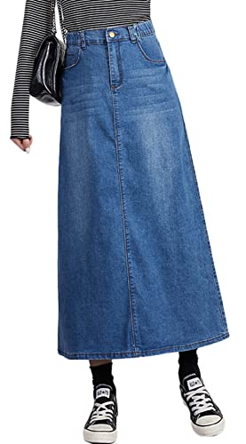 More information about CHARTOU Women's Casual Elastic Waist Zip Up Denim Maxi A Line Skirt with Pockets