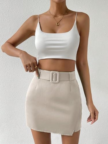 Floerns Women's Solid High Waist Pencil Belt Skirt Bodycon Mini Skirt 1