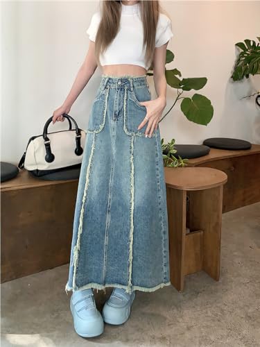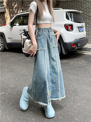 • Feature: This flare maxi jean skirt is featured with stretch fabric, a-line silhouette, raw hem cut for new y2k style, flared open bottom for freely move, 2 side pockets. Especially, the knee length, not just make you look taller, also perfect for various body type.