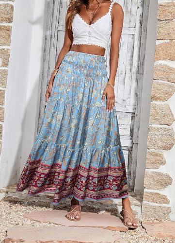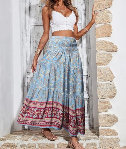 • UNIQUE DESIGN:This Floral Maxi Skirt Goes With Elastic Waist, Flared Pattern, Unique And Exquisite Ethnic Print, Ruffle Pleated Hem. Beautiful And Dressy Printed Details Are The Most Distinctive Highlight Of This A Line Skirt. With Comfy And Breezy Fabric, This Wrap Skirt Insure You a Cool Summer. Swing Tiered Skirt, A Staple In Every Women’s Wardrobe.