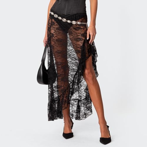 • Feature: Women y2k see through lace maxi skirts: Low waist, solid color, see-through, unlined, full-length. Skirts for women long length, pull-on closure, easy to put on and take off