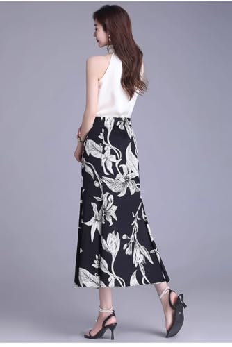 Women's Skirt Spring Retro High Waist Print Slit Mid-Length Skirts for Women 5