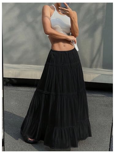 • Features: maxi skirt for women, drawstring waist, tiered skirt, ruffle hem, solid color, flowy skirt for summer, boho skirt