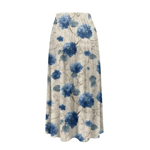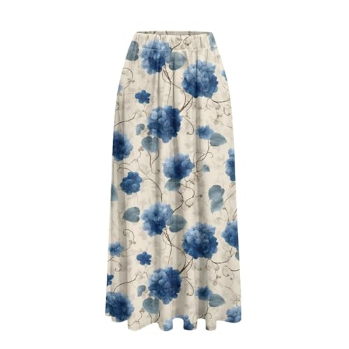 Long Skirts for Women with 2 Side Pockets A-Line Midi Length Skirt Elastic Flowing Half Dress Hawaiian Beach Summer 7