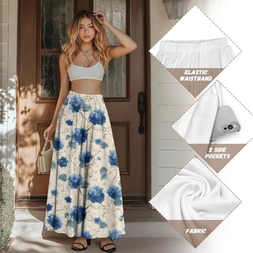 Long Skirts for Women with 2 Side Pockets A-Line Midi Length Skirt Elastic Flowing Half Dress Hawaiian Beach Summer 5