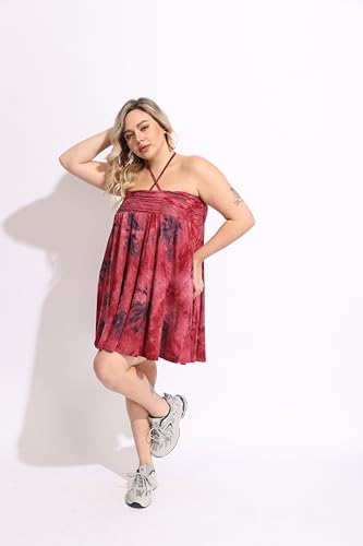 HOT ! TIYOMI Women Plus Size Skirts Stretchy Waist Hidden Drawstring Zipper Midi Skirt 2 Ways to Wear As A Tube Top Tie Dye Fall Autumn Winter Long Skirts Red XL