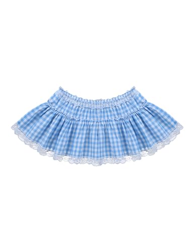 Women Frilly Lace Micro Mini Plaid Skirt Ruffled Pleated Skirt Sissy Crossdress Daily Party Dress 1