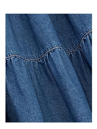 Womens Casual Denim Cake Skirt High Waist Loose Fit Wash Denim Midi Length Casual Jean Skirt 5