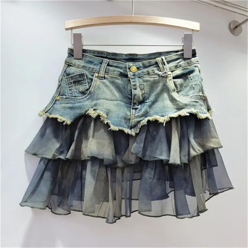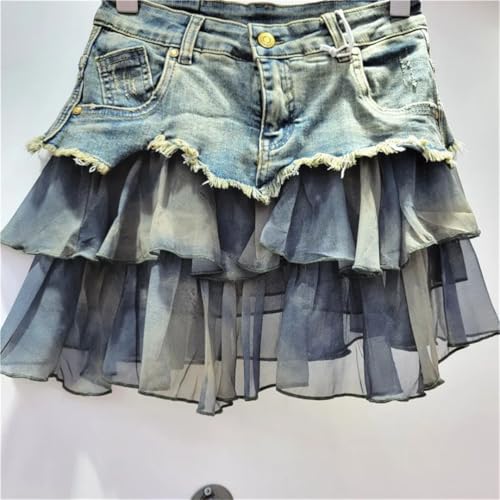 HOT ! Women's Denim Contrasting Color High Waist American Street Loose A Word Short Denim Skirt