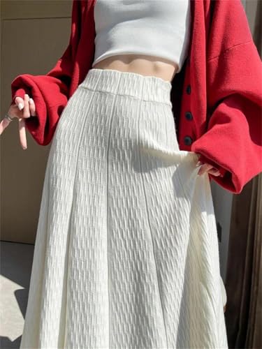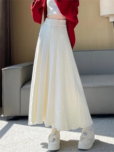 HOT ! Women Vintage Elegant A-Line Skirt Fall Winter Classic Long High Waisted Knit Skirt Beige L