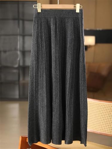 Women's Fall Winter A-Line Pleated Cashmere Skirt Elastic Waist 100% Merino Wool Wool Skirts Cherry Red M 6