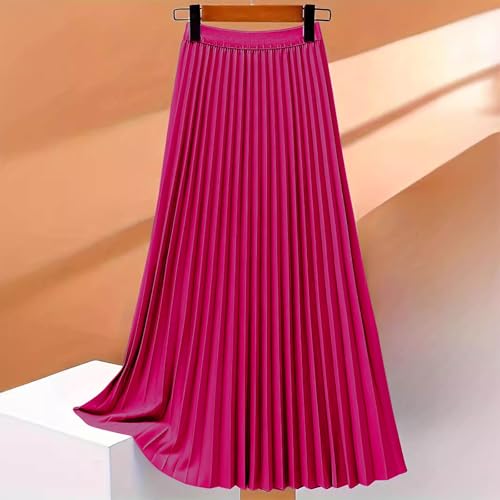 More information about Women's Pleated Skirt Satin Flowy Swing A-Line Skirt Summer Casual Loose Solid High Waist Plus Size Midi Skirts