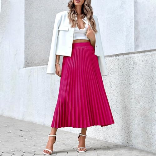 HOT ! Women's Pleated Skirt Satin Flowy Swing A-Line Skirt Summer Casual Loose Solid High Waist Plus Size Midi Skirts