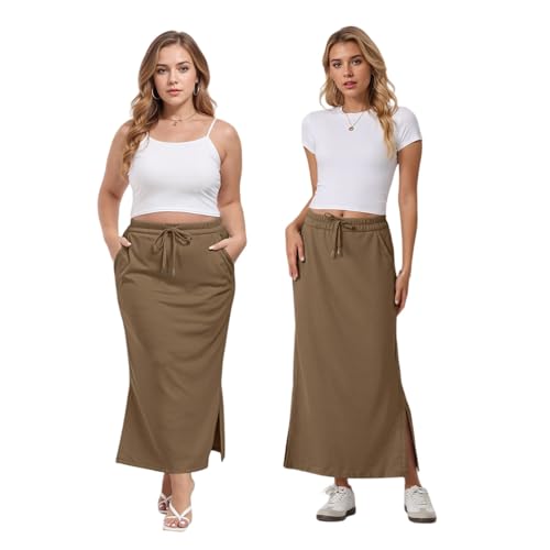 HOT ! Straight Leg Skirt Casual Maxi Dress for Womens High Waist Trendy Drawstring Side Slit Skirts with Pockets