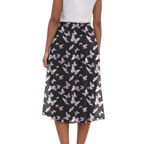 HOT ! Rvidbe Long Skirts for Women - Floral Butterfly Printed Drawstring High Waited Pleat Skirt Fall Casual Vacation A Line Skirts
