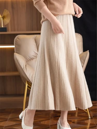 Pulcykp Women Knit Pleated Skirt Wool Blend A-Line Long Skirt Soft Warm Fall Winter Slim Elastic Waist Skirts 5