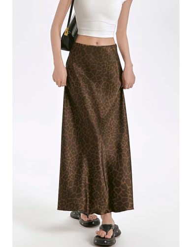 Women's Leopard Print Skirt Satin Midi Long Length High Waisted A Line Casual Drape Y2k Fashion Skirts 2