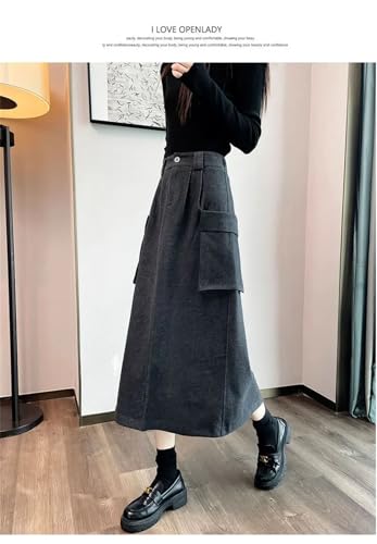More information about Women's Winter High Waist Plus Size Midi Twill Large Pocket Side Slit Wool A-Line Skirt