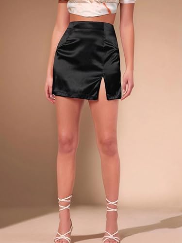 Womens' Plain Slit Hem Satin High Waist Skirt Casual Mini Skirts for Women 6